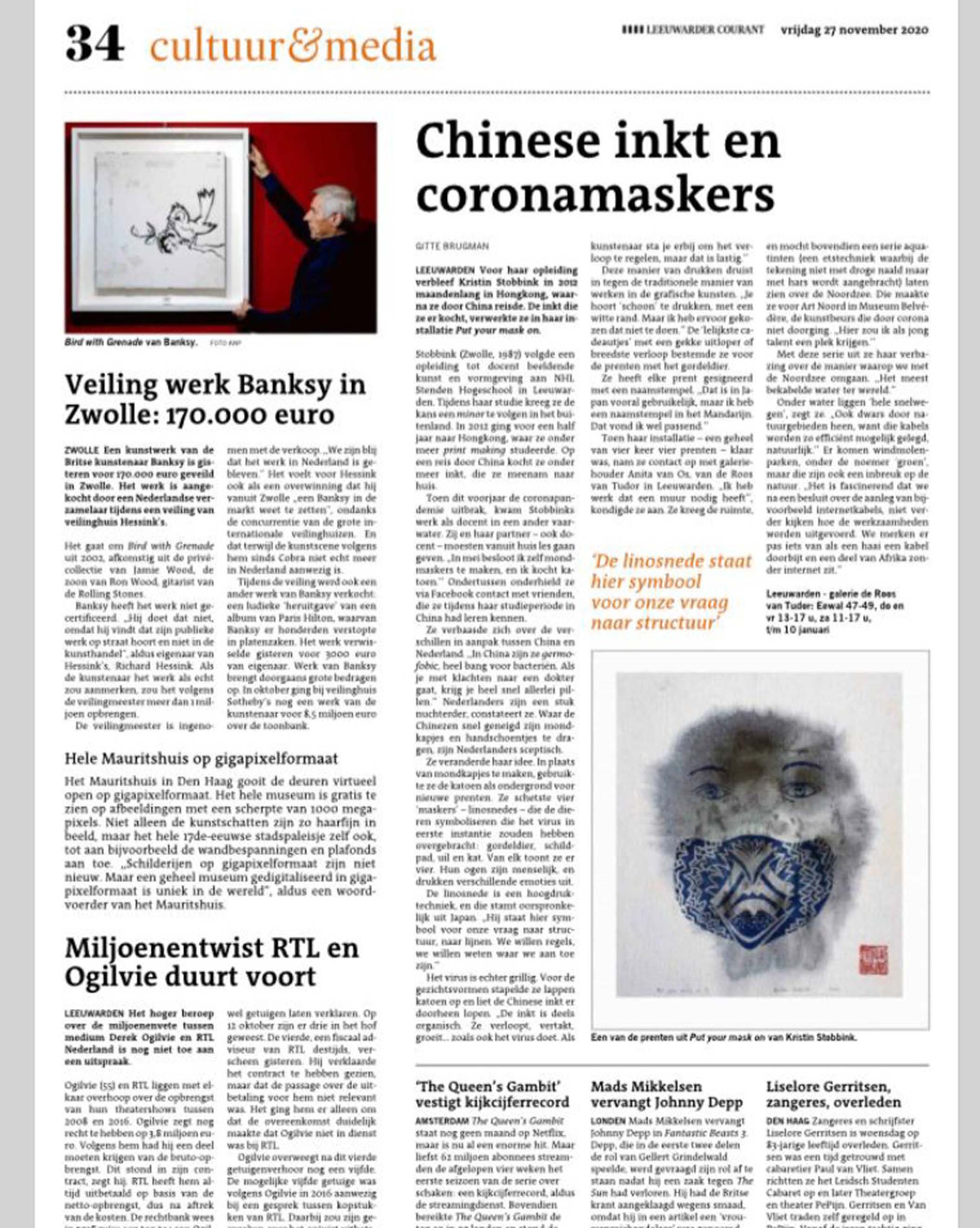In stilte en in aanhoudende exclusiviteit van onze eigen woning keken wij in december van 2020 naar de persconferentie op tv. Hierin werd duidelijk dat halverwege december er sprak was van de tweede Lockdown. Ook voor Kristin Stobbink was het ondertussen niet meer uitzonderlijk om dagen thuis te zitten. Tijdens de eerste Lockdown maakte ze al een kunstinstallatie genaamd “Put your mask on” een momentum waarop de inpakt van de “mondkapjes verplichting” de massa raakte.